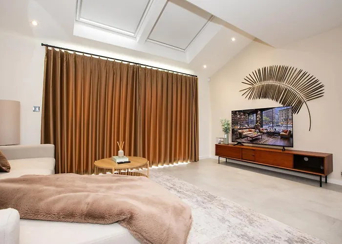 The 80 m² The Scenic Luxury House Apartment Manchester is also located just 500 metres from the Belle Vue Greyhound Stadium. The apartment is fitted with a terrace which boasts views of the garden.